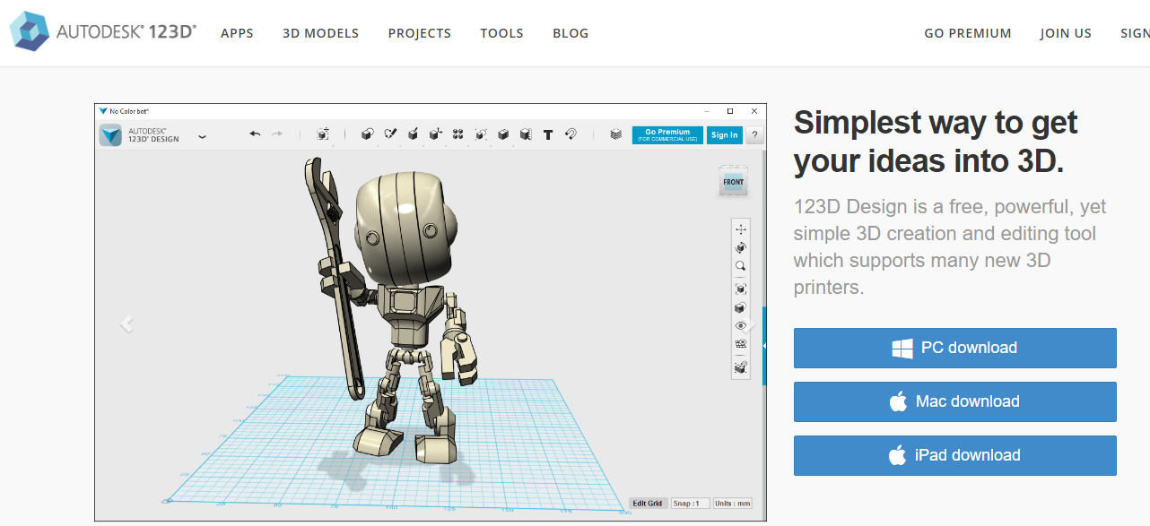 ดาวน์โหลดได้ที่ Autodesk 123D เลือก 123D Design และทำการติด,ตั้งโปรแกรม>