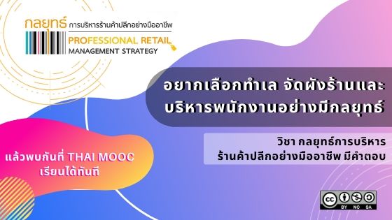 ประเภทของธุรกิจค้าปลีกต่างๆ ความสำคัญและบทบาทหน้าที่ของพนักงานขายในธุรกิจค้าปลีก กลยุทธ์การออกแบบผังร้านและการวางแผนรูปแบบให้เหมาะสมกับพื้นที่ กลยุทธ์วิธีการบริหารจัดการและควบคุมดูแลสภาพร้านค้าปลีกตามมาตรฐานร้านค้าคุณภาพในธุรกิจค้าปลีก
